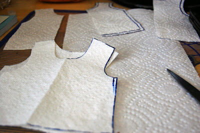 I'm using paper towels for drafting because they're cheaper than wasting fabric. Go me. I'm basing my t-shirt design off this cute shirt from Japanese brand Candy Stripper, except I'm using real yarn braids instead of iron-on graphics. Figuring out how to make the collar and sleeves fit is currently proving to be quite the challenge... :(