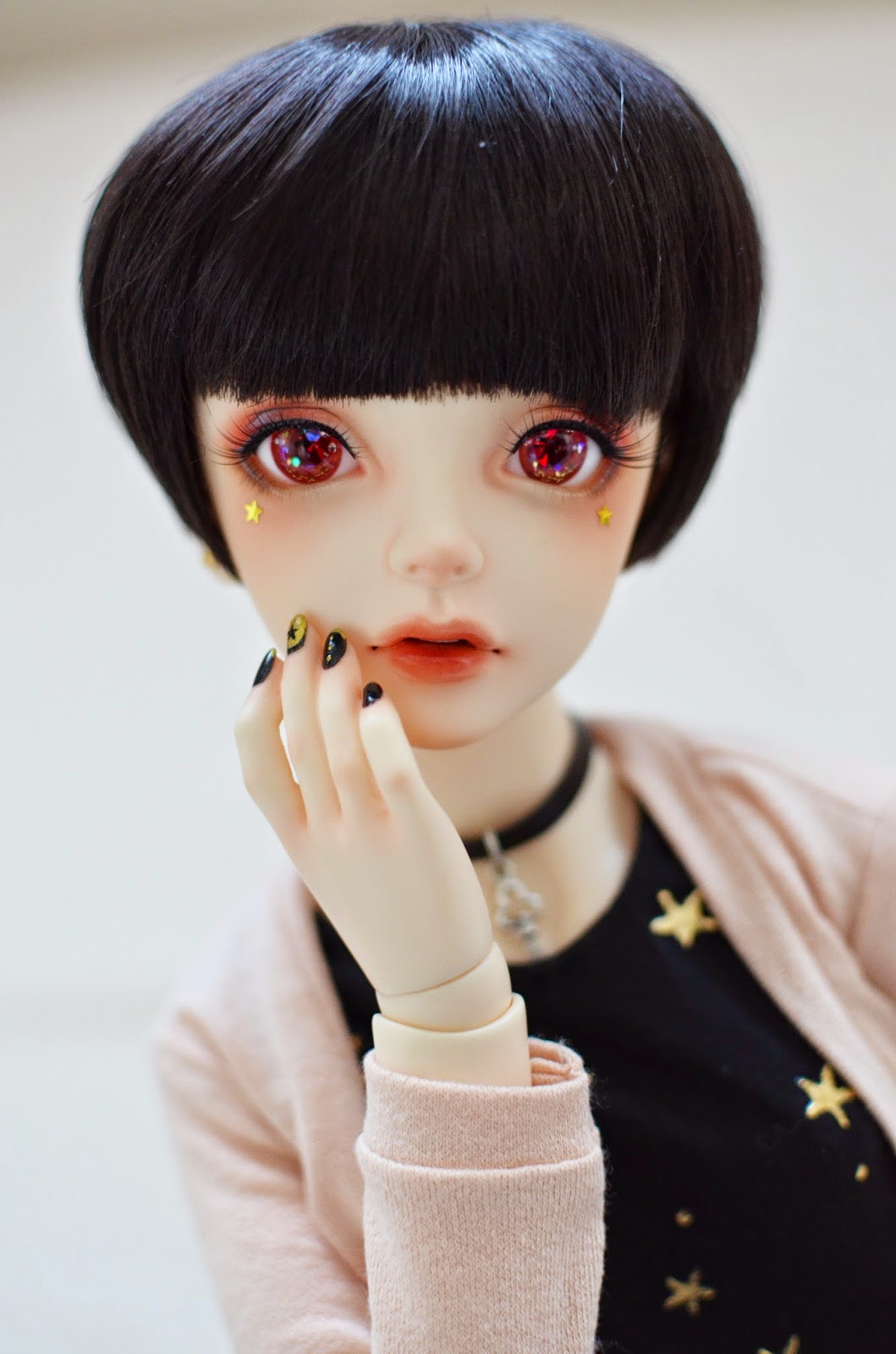 And finally, here's the girl I'm taking back with me to school! I originally wanted to do an enhanced faceup like DJ's, but the way I painted the eyelid crease made it look a little too strong, so I decided to wipe it and redo the entire faceup. I've made a few changes - longer, darker eyebrows and lighter lips, but overall I'm pretty happy with her new look. You'll be seeing her a lot more often from now on!