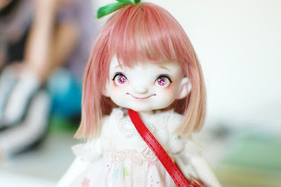 This is Prunella, my artist-cast Sephie Doll Shop Trébol in sugar (white) skin. Cloudburst Dolls & I worked together to create her unique peachy hairstyle. She's an adorable little peach fairy with a penchant for mischief. To be honest, I had no idea what kind of character I would create with her since I've only owned SD girls up until now, so it's been difficult imagining what I would do with a doll of such a small size. I'm glad everything worked out, though!